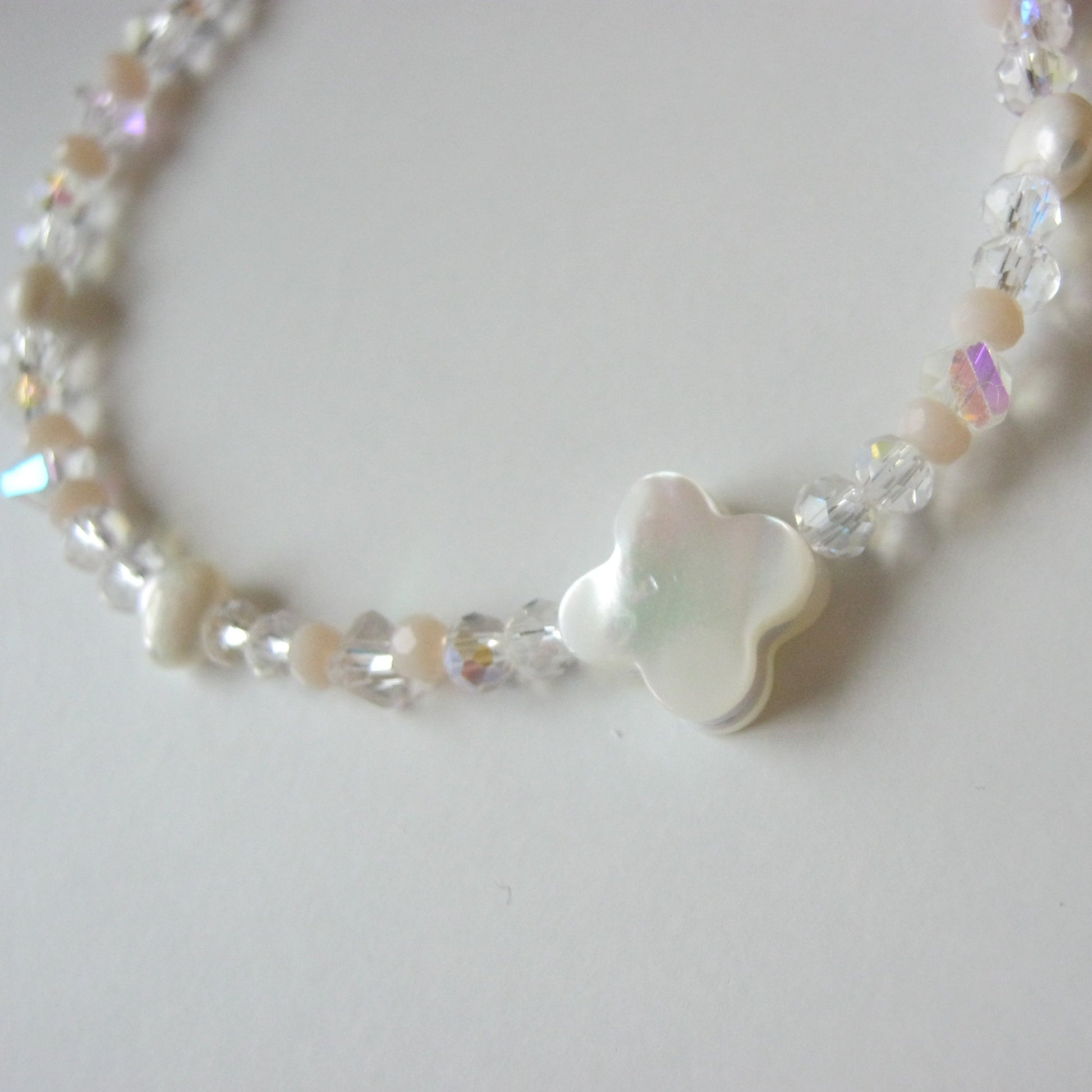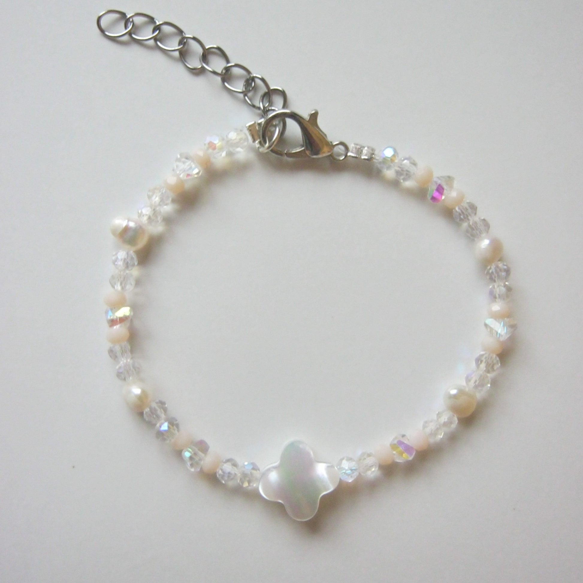 The Abby Bracelet is made with iridescent and cream-coloured crystals as well as real freshwater pearls.