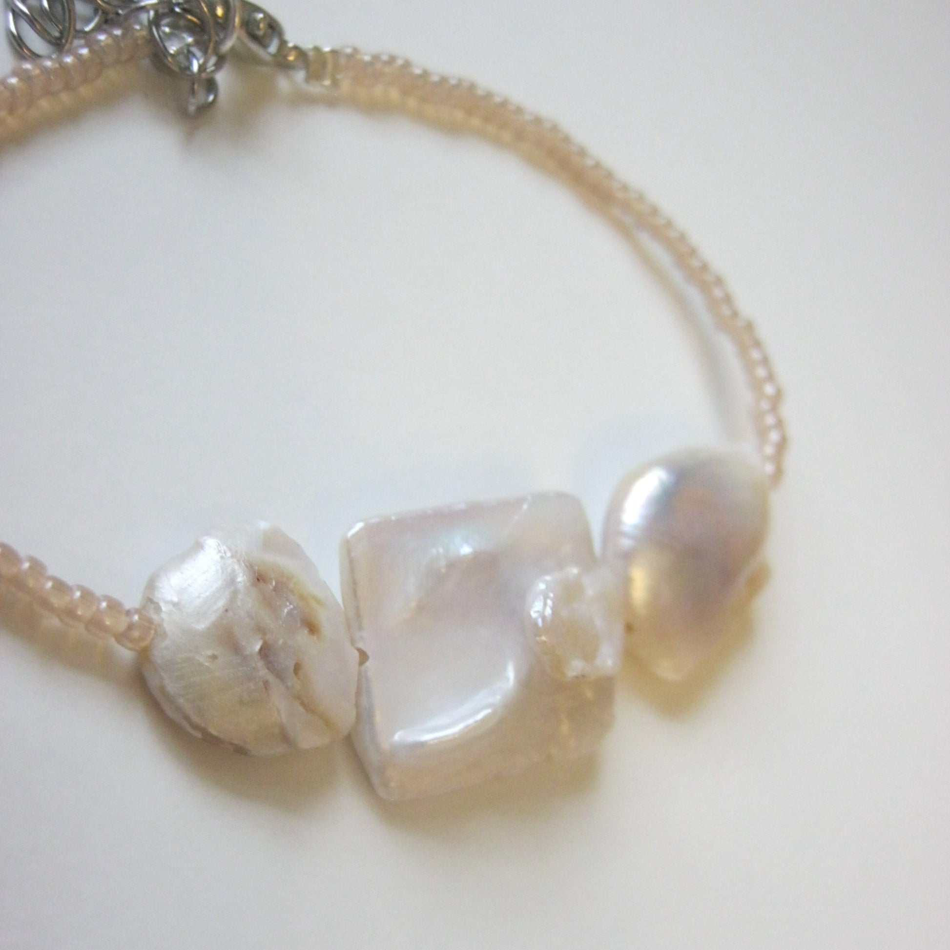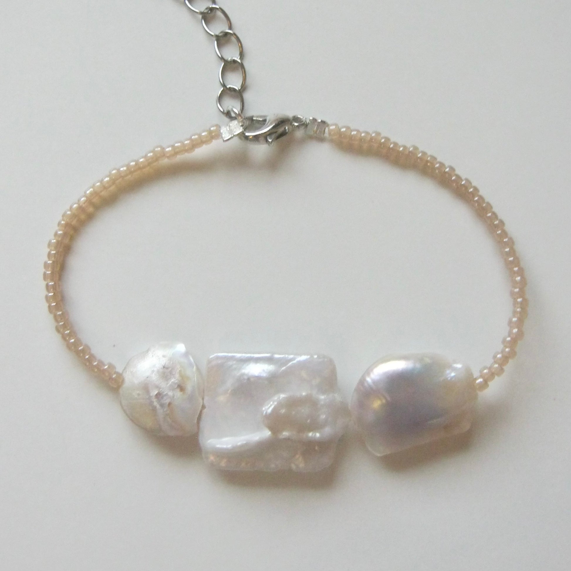 The Daphne Bracelet is a staple piece made with real freshwater pearls and beads in the shade Champagne Pop.