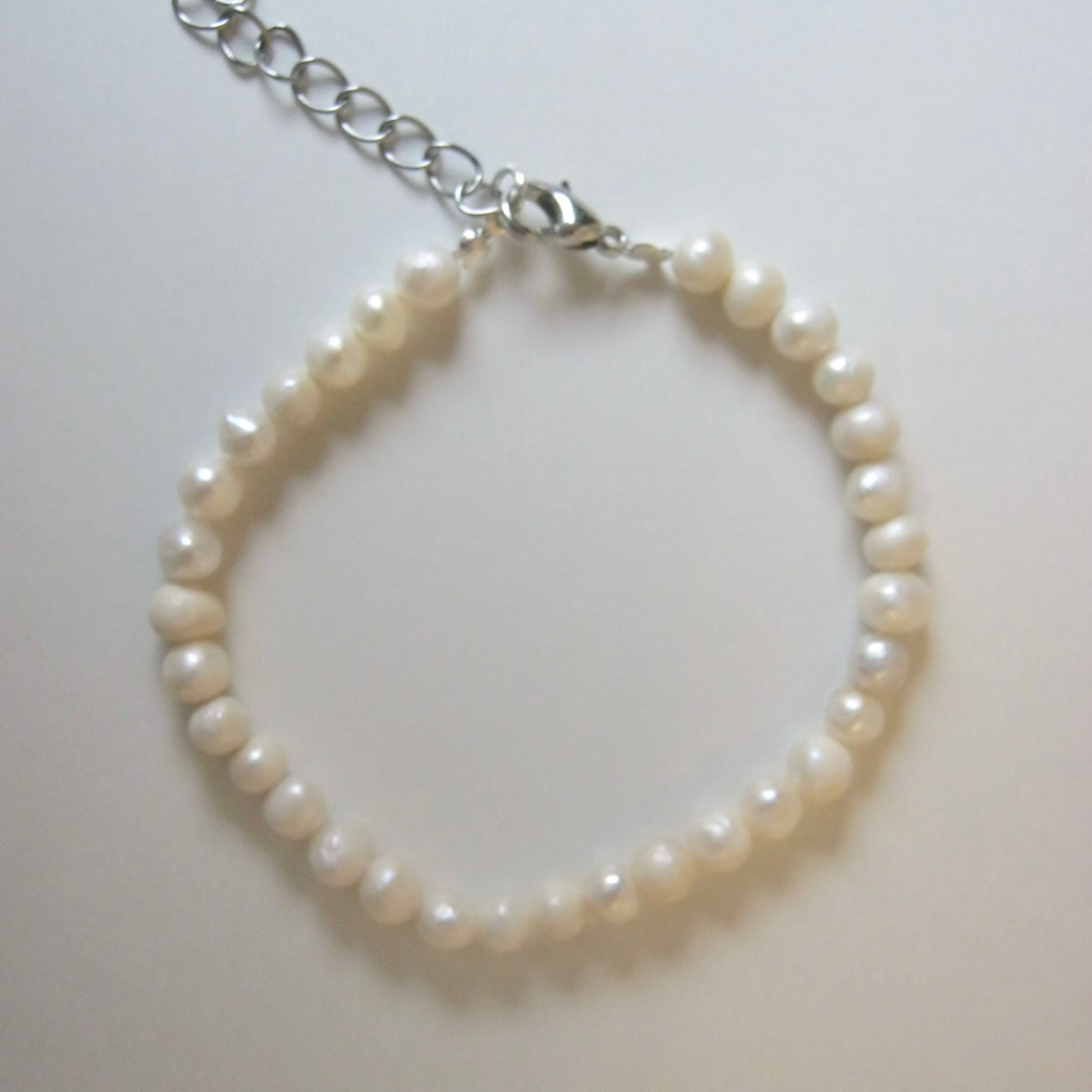 The Lucy Bracelet is a classic piece made with real freshwater pearls. Perfect for stacking, but can also be worn alone.