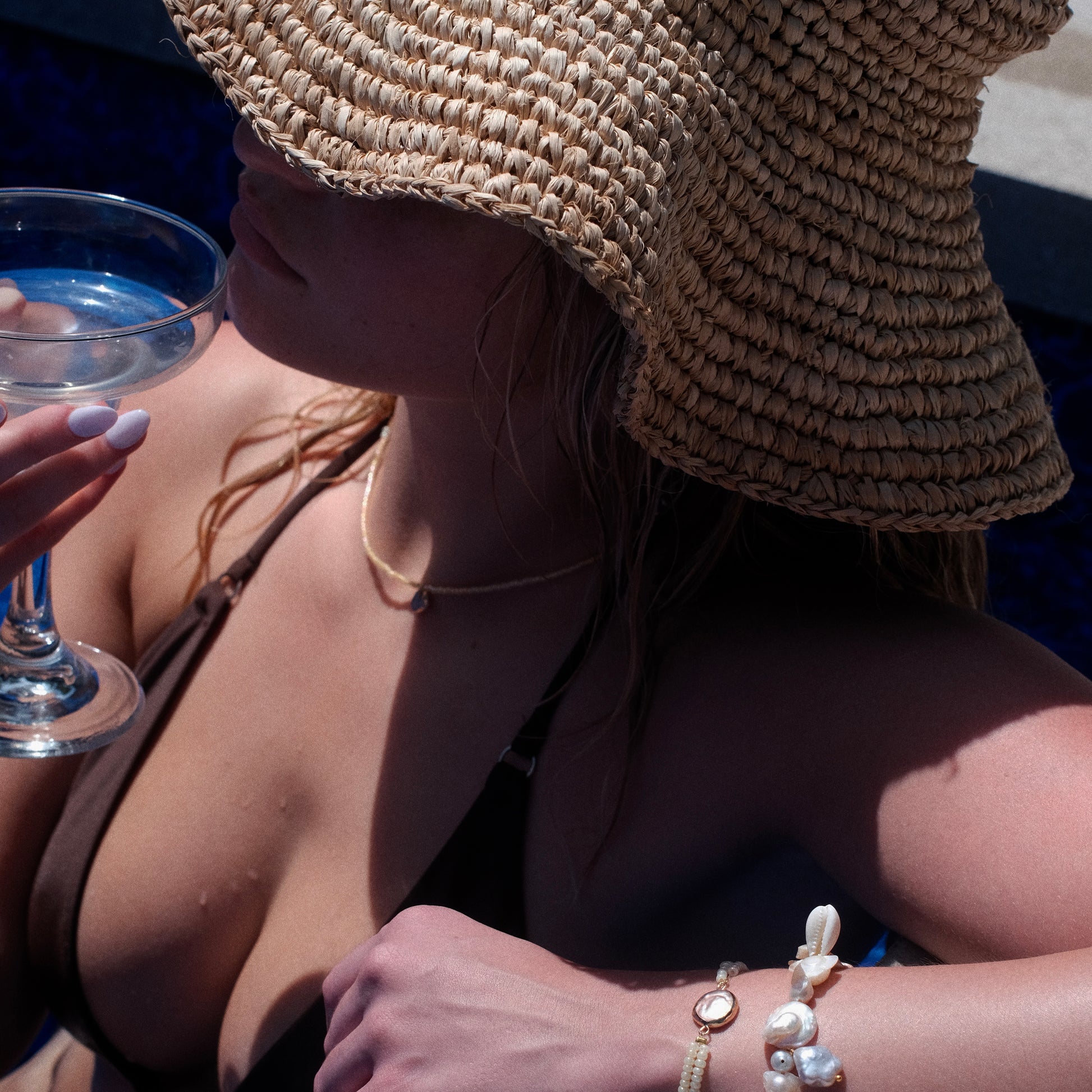 The Mango Spice necklace is made with real freshwater pearls and comes in two shades. Pair it with a bikini for the perfect look.